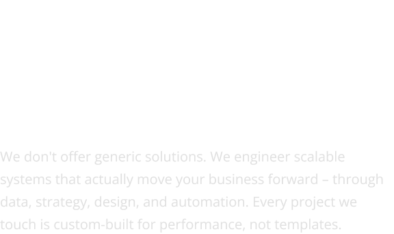 Increase your efficiency wisely. Frustrated with the cookie- cutter approach of today’s B2B service market, we set out to change the game. We build scalable systems, design that converts, and automation that actually fits your business. By integrating cutting-edge technologies, we optimise your business, save you time and money, and deliver real, goal- driven results, as your success is our priority.